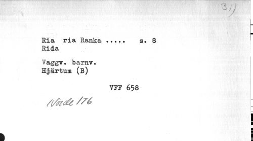//// f. • ..•-!' '. i //// Ria ria Ranka... s. 8 //// Rida //// Vaggv. barnv. Hgärtum (B) //// VFF 658 //// /7é t //// T //// i //// I //// | //// i i ////