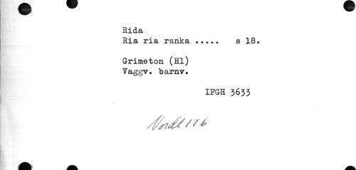 //// Rida //// Ria ria ranka • •••• s 18. //// Grimeton (Hl) Vaggv. barnv. //// IFGH 3633 ////