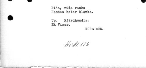 //// Rida, rida ranka Hästen heter blanka. //// ^^ Up. Fjärdhundra. //// HA Yisor. //// NORD» MUS. //// //n/t/7t ////