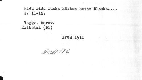 //// Rida rida ranka hästen heter Blanka... s. 11-12. //// Vaggv. barnv. Erikstad (Dl) //// IFGH 1511 //// \ ////