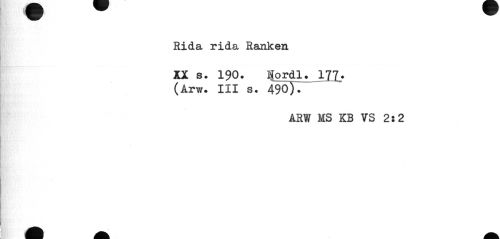 //// Rida rida Ranken //// XX s. 190. JJordl. 111. //// (Arw. III s. 490). //// ARW MS KB VS 2:2 ////