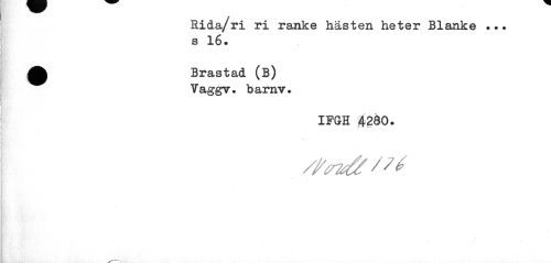 //// Rida/ri ri ranke hästen heter Blanke ... s 16. //// Brastad (B) Vaggv. barnv. //// IFGH 4280. //// /fy ////