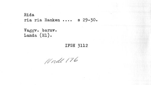 //// i //// Rida //// ria ria Ranken ... s 29-30» //// Vaggv. barnv. Landa (Hl). //// IFGH 3112 ////