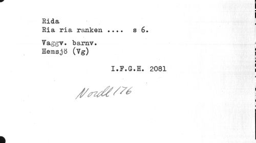 //// ¦ //// Rida [ //// Ria ria ranken ... s 6. //// Vaggv. barnv. //// Herasjö (Vg) ! //// I.F.G.H. 2081 ! //// i //// ! //// L B //// k ////