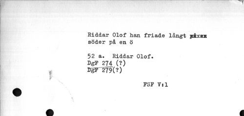 //// f. //// ¦ //// Riddar Olof han friade långt påxmjs. söder på en ö //// 52 a. Riddar Olof. //// DgF 274 (?) DgF 279(?) //// m - r . //// FSF Vt 1 //// fl B ¦ //// - ////