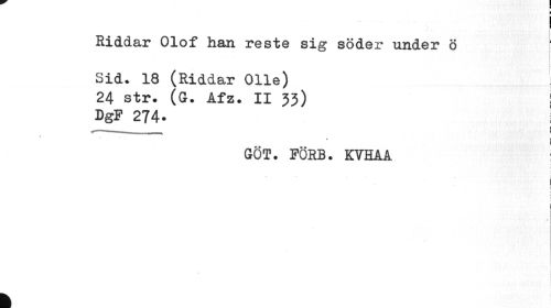 //// I //// f //// « ¦ V -j //// Riddar Olof han reste sig söder under ö Sid. 18 (Riddar Olle) //// 24 str. (G. Afz. II 33) | //// DgP 274. //// i //// I //// i ! //// GÖT. PÖRB. KVHAA //// ! i //// ''-V //// l //// . i ! //// I //// k ////