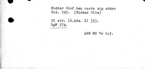 //// Riddar Olof han reste sig söder Sid. 245. (Riddar Olle) //// ^ 25 str. (G.Afz. II 33). //// DgF 274. //// ARW MS Ys 2:3. //// fp //// i ////