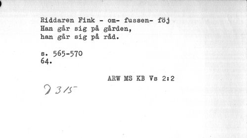 //// Riddaren Fink - om- fussen- föj Han går sig på gården, han går sig på råd. //// s. 565-570 //// 64» //// ARW MS KB Ys 2:2 //// 9 3 sr ////
