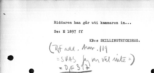 //// Riddaren han går uti kammaren in... //// Se: E 1897 tf //// KB:s SKILLINGTRYCKSREG. ////