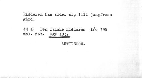 //// Riddaren han rider sig till jungfruns gård. //// 44 a. Den falske Riddaren i/o 298 mel. not. //// ARWIDSSON. //// ' 'i ////