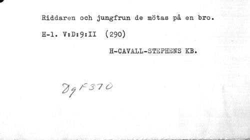 //// Riddaren och jungfrun de mötas på en bro. //// H-l. VsD:9sII (290) //// H-CAVALL-STEPHENS KB. //// O ////