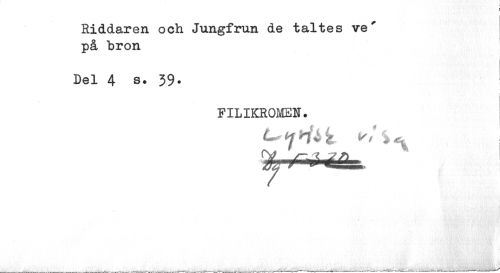 //// Riddaren och Jungfrun de taltes ve' på bron //// Del 4 s• 39. //// FILIKROMEN. //// ___, .. „ __„ ___-1 w.-"*. .¦.vft.aj^ v ___ _ -r.^gj'.^ ////