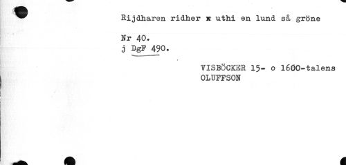 //// / B //// ^^ Rijdharen ridher k uthi en lund så gröne //// Hr 40. j DgF 490. //// VISBÖCKBR 15- o 1600-talens 0L UFF SON ////