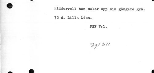 //// ^^ Riddervoll han salar upp sin gångare grå» //// 72 d. Lilla Lisa. //// FSF 7:1. //// * ////