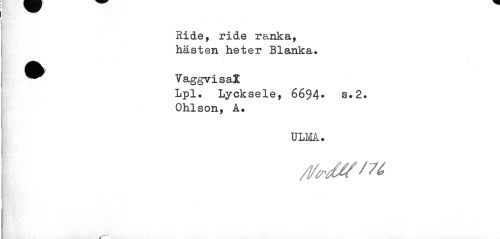 //// Ride, ride ranka, hästen heter Blanka. //// ^^ VaggvisaX //// Lpl. Lycksele, 6694* //// Ohlson, A. //// ulm. ////