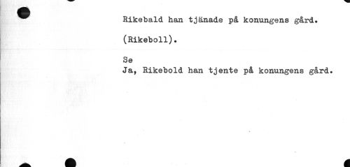 //// ^^ Rikebald han tjänade på konungens gård. //// (Rikeboll). Se //// Ja, Rikebold han tjente på konungens gård. ////