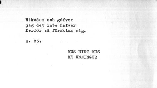 //// Rikedom och gåfvor jag det inte hafver Derför så föraktar mig. //// s. 83. //// MUS HIST MUS MS ENNINGER ////
