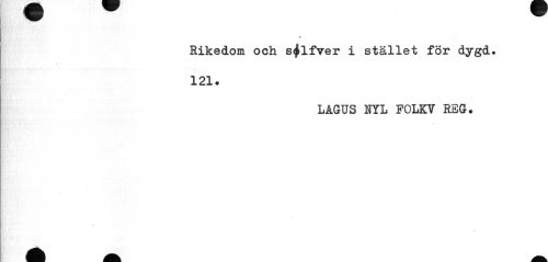 //// Rikedom och s^lfver i stället för dygd. 121. //// LAGUS NYL FOLKV REG. //// 4 ¦ //// t ////