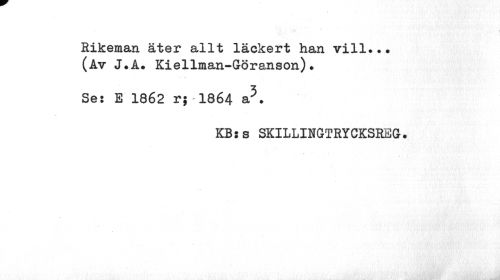 //// Rikeman äter allt läckert han vill... (Av J.Å. Kiellman-Göranson)? //// Ses E 1862 r;-1864 a5. //// KBss SKILLINGTRYCKSREG. ////