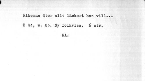 //// Rikeman äter allt läckert han vill**» B 94, s. 8J. Ny folkvisa. 6 str. //// RA. //// 1 //// fjsi» ' ' v (¦ «>v • 'i 1 //// - //// : s ////