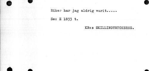 //// Riker har jag aldrig varit... //// Se: E 1833 t. //// KB:s SKILLINGTRYCKSREG. ////