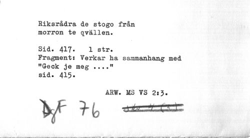 //// Riksrådra de stogo från morron te qvällen. //// Sid. 417. 1 str. //// Fragment; Verkar ha sammanhang med tfGeck je meg •.. .ft sid. 4i5» //// ARW. MS VS 2:3. //// . ___* ___ ___j6l. ^ - _rfi»---WM i-lifÉiÉÉ ---åki. iBdMÉJ* 1 il ---—-w**--- ////