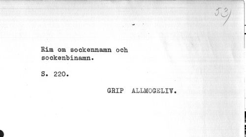 //// Rim om sockennamn och sockenbinamn. //// S. 220. //// GRIP ALLMOGELIV. | //// k ////