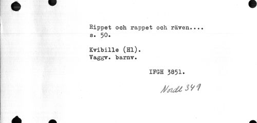 //// Rippet och rappet och räven... s. 50. //// Kvibille (Hl). Vaggv. barnv. //// IFGH 3851. ////