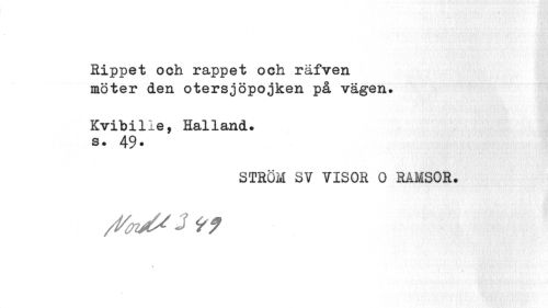 //// Rippet och rappet och räfven möter den otersjöpojken på vägen. //// Kvibilie, Halland. //// s. 49. //// STRÖM SV VISOR 0 RAMSOR. ////