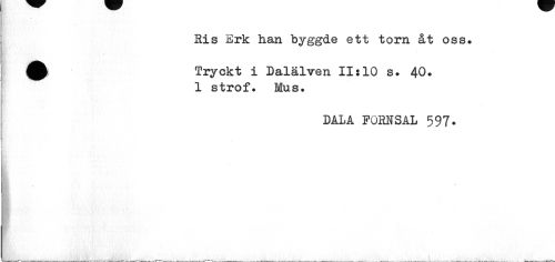 //// Ris Erk han byggde ett torn åt oss. //// £ Tryckt i Dalälven 11:10 s. 40. //// 1 strof. Mus. //// DALA FöRNSAL 597. ////