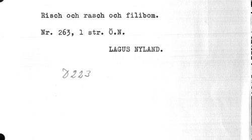 //// I //// Risch och rasch och filibom. Nr. 263, 1 str. Ö.N. //// i ¦ //// 1 //// LAGUS NYLAND. j //// I //// I //// I i //// jäS //// I 1 ////