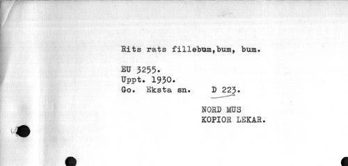 //// ^^ ' 1,1 åtk //// ¦ //// . \ ¦ ..V ' ... //// l //// Rits rats fillebxim,bum, bum* //// : //// EU 3255. //// uppt. 1930. //// Go. Eksta sn. I) 223. //// * //// FORD MUS KOPIOR LEKAR. ////