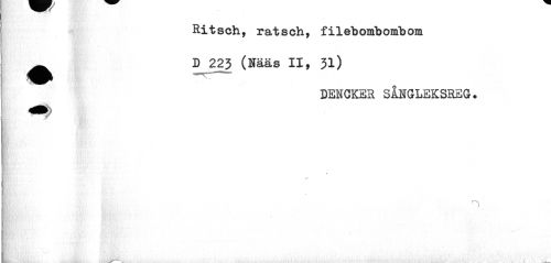 //// Ritsch, ratsch, filebonibombom //// A D 223 (Nääs II, 31) //// DEMCKER SÅNGLEKSREG. //// /-v. A ) ////