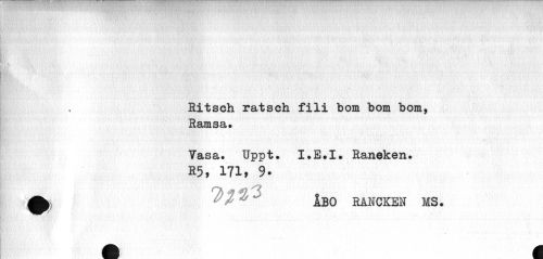 //// ' ''''<, "' ' "'* tT^^^SW-J^S^qVT-Tr T • • V.'' ''' "flfSfllfff-7"'¦'T'™1'1' ' • 7! . Ti \\ .:;" ' . r . - • ' ¦¦'.<. //// V" ' > ' • « Bwi-iii VvWVWr >•'''-.' 1 • ' •' //// Ritsch ratsch fili bom bom bom, Ramsa. //// 'V * ¦ ¦ ... — //// Yasa. Uppt. I.E.I. Raneken. //// R5, 171. 9- //// •k) ÅBO RMCKEN MS. //// / ////