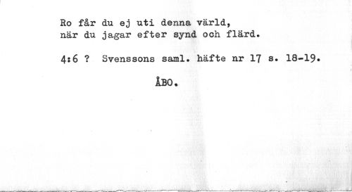 //// Ro får du ej uti denna värld, när du jagar efter synd och flärd. //// 4:6 ? Svenssons saml. häfte nr 17 s. 18-19» //// i //// ÅBO. ////