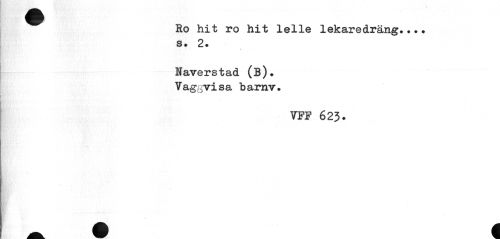 //// Ro hit ro hit lelle lekaredräng...• s. 2. //// Näverstad (B). Vaggvisa barnv. //// VFF 623. ////