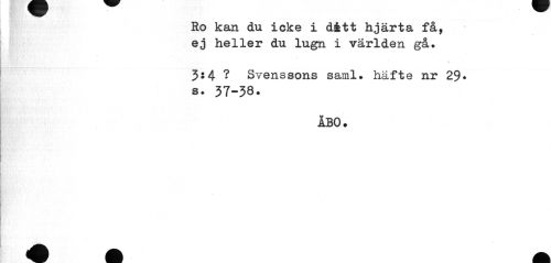 //// Ro kan du icke i ditt hjärta få, ej heller du lugn i världen gå» //// 3:4 ? Svenssons saml. häfte nr 29* s. 37-38. //// ÅBO. ////
