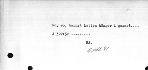 //// \ //// Ro, ro, barnet katten hänger i garnet... //// A 322:52 ... //// RA. ////