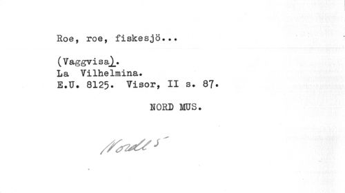 //// Roe, roe, fiskesjö... //// ( Vaggvisa},. //// La Vilhelmina. //// E.U. 8125. Visor, II s. 87. //// NORD MOS. //// % ////