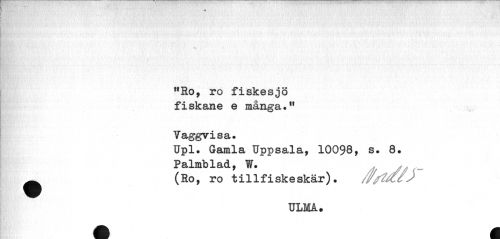 //// ¦/, ¦•. Mv Jji K' }' '"'t //// flRo, ro fiskesjö fiskane e många.11 //// Vaggvisa. //// Upl. Gamla Uppsala, 10098, s. 8. Palmblad, W. , j, //// ^ (Ro, ro tillfiskeskär). /fflécc) //// ULMA. ////