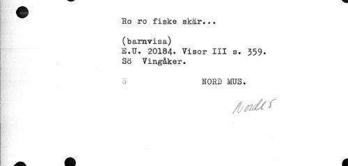 //// Ro ro fiske skär..? (barnvisa) //// E.U. 20184* Visor III s. 359* Sö Vingåker. //// ö HORD MUS. //// v ////