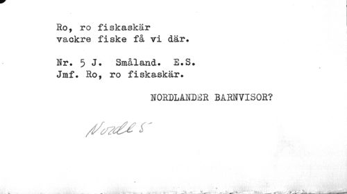 //// Ro, ro fiskaskär vackre fiske få vi där. //// Nr. 5 J. Småland. E.S. //// * //// Jraf. Ro, ro fiskaskär. //// NORDLANDER BARNVISOR? //// > //// V .. ~ ...- - V" V' > • fAu ////