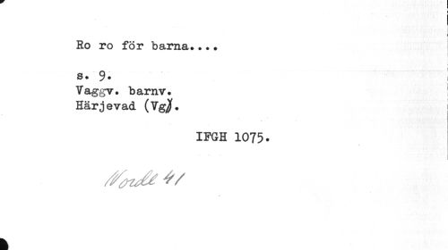 //// Ro ro för barna... //// : //// s • 9 • //// Vaggv. barnv. ¦ //// Härjevad (Vgjf. ! //// i • //// IFGH 1075. //// 9 //// k ////