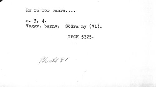 //// Ro ro för banra... //// s. 3, 4. //// Vaggv. barnv. Södra ny (Vi). //// IFGH 5325? //// • / ////