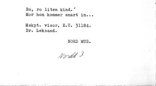 //// Ko, ro liten kind.' //// Mor hon kommer snart in... //// Mskpt. visor, E.U. 3II84. Dr. Leksand. //// NOED MUS. ' //// 1 ////