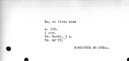 //// Ro, ro liten kind //// 8. 129» //// 1 str. //// Tr. Hordl. 5 a. Tr. nr //// ^ BORGSTRÖM MS KVHAA. ////