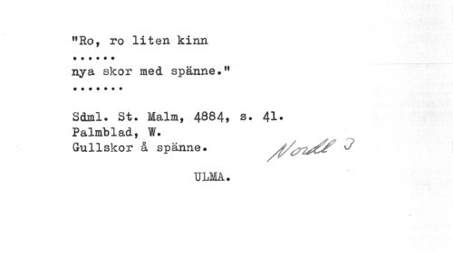 //// flRo, ro liten kinn nya skor med spänne.H //// Sdml. St. Malm, 4884, s. 41. Palmblad, W. //// Gullskor å spänne. ^.r*./ //// ULMA. ////