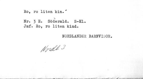 //// Ro, ro liten kin.' //// Nr. 3 E. Södermld. S-Hl. Jmf. Ro, ro liten kind. //// NORDLANDER BARNVISOR. //// 9 ////