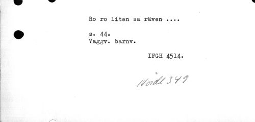 //// % //// Ro ro liten sa räven ... //// ^^ s. 44* //// Vaggv. barnv. //// IFGH 4514. //// "V ////
