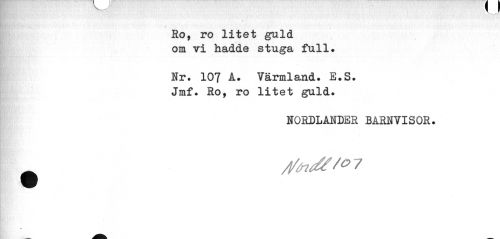 //// ¦ • . % //// Ro, ro litet guld //// om vi hadde stuga full. //// 1 • A t \ * ' //// Nr. 107 A. Värmland. E.S. //// Jmf. Ro, ro litet guld. //// - //// NORDLANDER BARNVISOR. //// 7 //// * ////